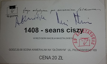 Bilet na spektakt "1408 - seans ciszy". Teatr odwiedziłem 12 lutego 2007 wraz z grupą innych fanów.