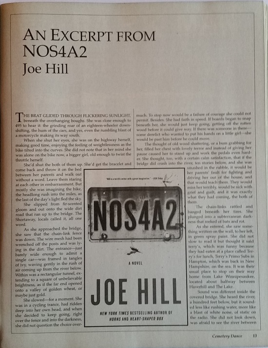 W tym numerze możemy przeczytać fragmenty książek "Doctor Sleep" Stephena Kinga oraz "Nos4A2" Joe Hilla.