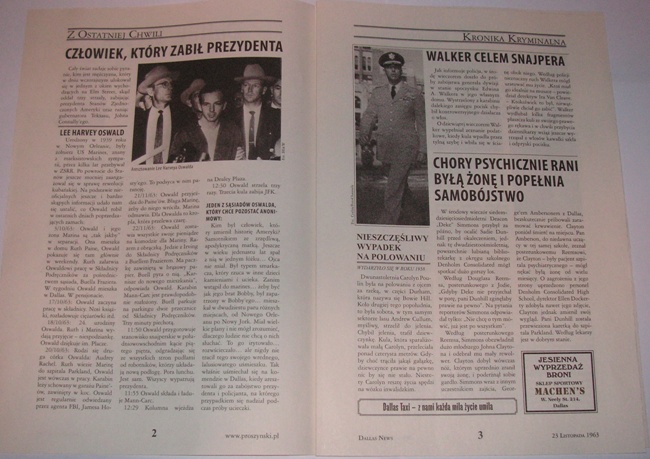 "Dallas '63" - gazetka reklamowa "Dallas News" 23 listopad 1963