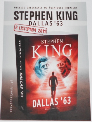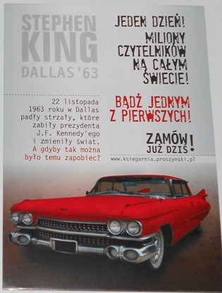 Dwustronna ulotka reklamowa powieści "Dallas '63". "Bądź jednym z pierwszych!". Promocja książki opierała się głównie o fakt ukazania się powieści na polskim rynku w dniu premiery światowej.