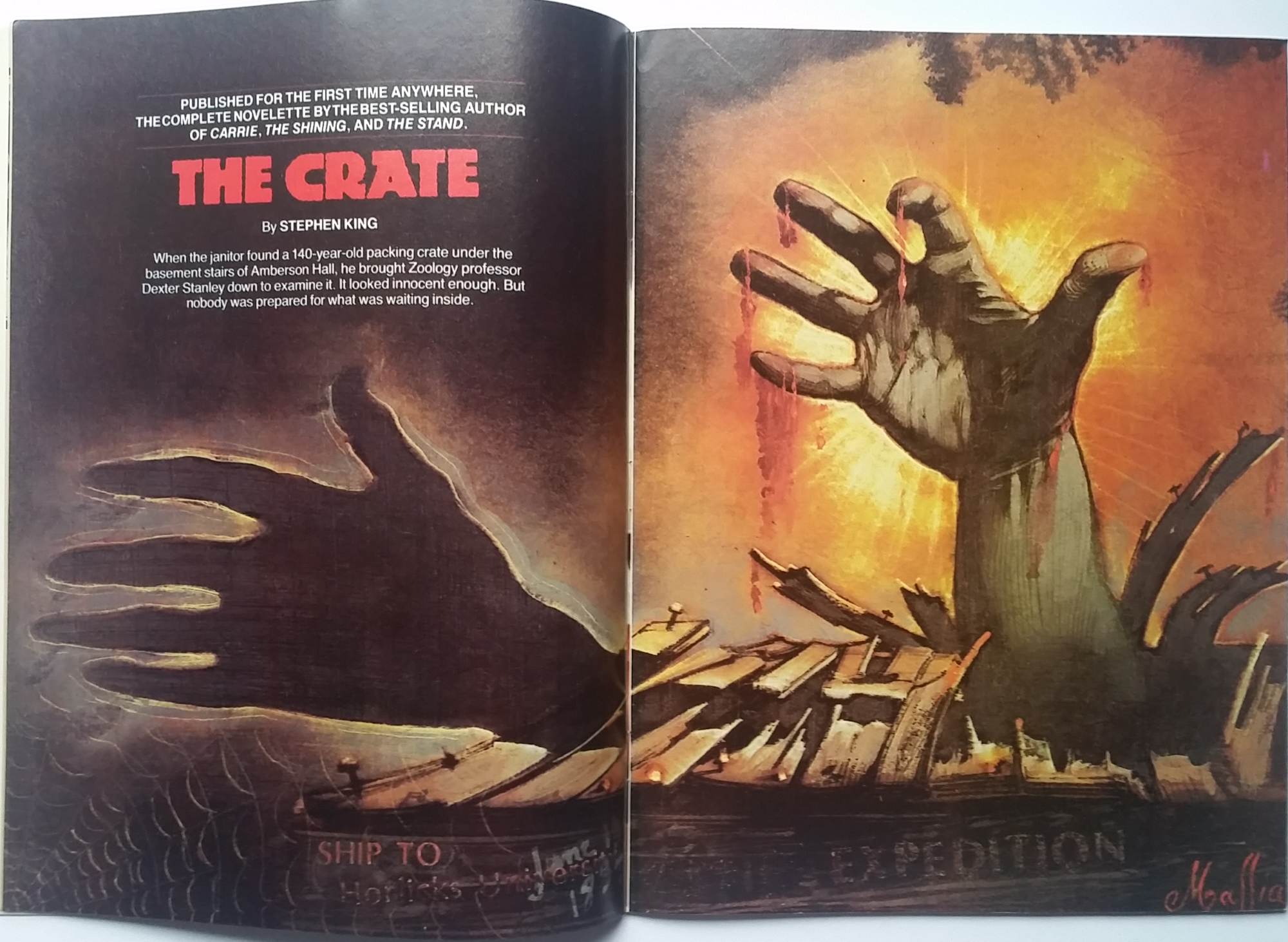 Pierwsza publikacja opowiadania "The Crate". Opowiadanie nie ukazało się w żadnym zbiorze Kinga, jednak zostało włączone do filmu oraz komiksu "Creepshow".