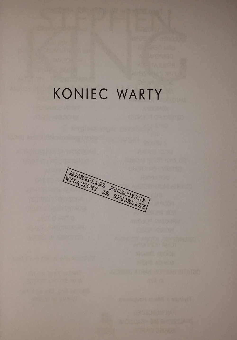 Książka opatrzona jest napisem "Egzemplarz promocyjny wyłączony ze sprzedaży" na tylnej stronie okładki oraz na stronie tytułowej.