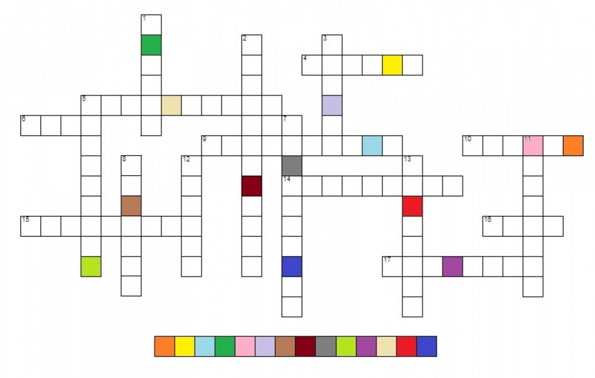 Aby wziąć udział w konkursie należy rozwiązać krzyżówkę i przesłać na maila hasło powstałe poprzez podstawienie liter z pól oznaczonych kolorami do odpowiadających im pól szablonu odpowiedzi. POZIOMO:
