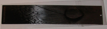 Metalowa, o wymiarach 2cm x 13cm, częściowo grawerowana, zapakowana w folię ze skromną ulotką.