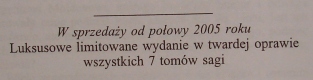 Wraz z wydaniem tego tomu pojawiła się zapowiedź "luksusowego limitowanego wydania w twardej oprawie wszystkich 7 tomów sagi". Niestety... zapowiedź wydawnictwa Albatros nie znalazła potwierdzenia w rzeczywistości, a nie można tłumaczyć tego wydaniem klubowym Świata Książki, bo to zaczęło się ukazywać już w 2003 roku.