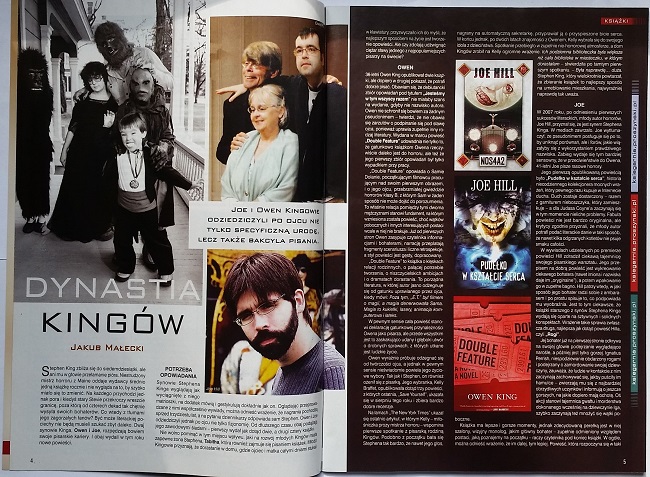 Aartykuł "Dynastia Kingów" Jakuba Małeckiego zilustrowana fajnymi zdjęciami i traktująca o pisarskich aspiracjach synów Kinga: Joe Hilla i Owena Kinga.