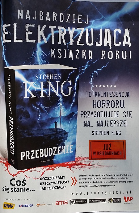 Miesięcznik "Nowa Fantastyka" wydawana jest przez "Prószyński Media" więc nic dziwnego, że promują swoje publikacje. W tym numerze znajduje się całostronicowa reklama powieści "Przebudzenie".