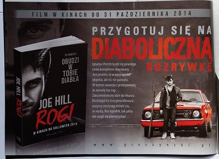 Dodatkowo reklama 1/3 stronicowa filmu"Rogi" na podstawie powieści Joe Hilla, a jednocześnie książki z filmową okładką.