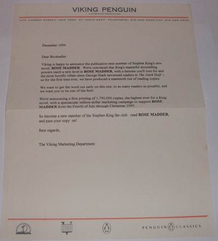 Do książki dołączony list redaktora do czytelników zachęcający do zapoznania się z powieścią, która ukaże się następnego lata, jednocześnie zapowiadając nakład 1.750.000 egzemplarzy oraz ogromną kampanię promocyjną, która rozpocznie się 4 lipca 1995 roku