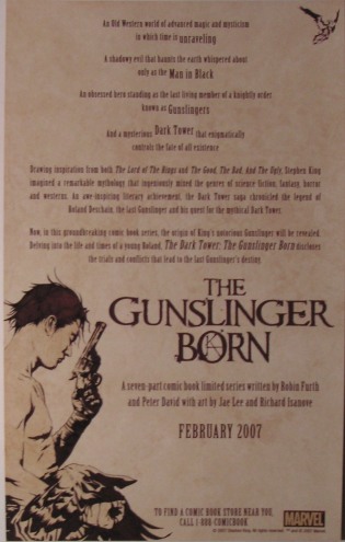 Ulotka promoująca pierwszą część czyklu komiksowego "The Dark Tower: The Gunslinger Born" wydawnictwa Marvel.