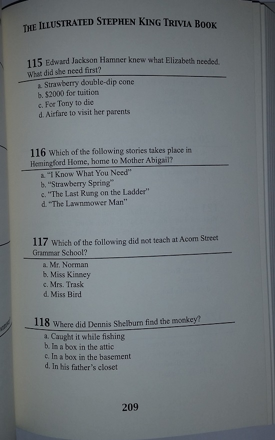 Nowa wersja wcześniejszej publikacji opracowana przez Briana James Freemana & Beva Vincenta - dwóch hardcore'owych fanów i znawców Stephena Kinga. Bogato ilustrowana książka pełna podchwytliwych pytań i ilustracji Glenna Chadbourne'a.
