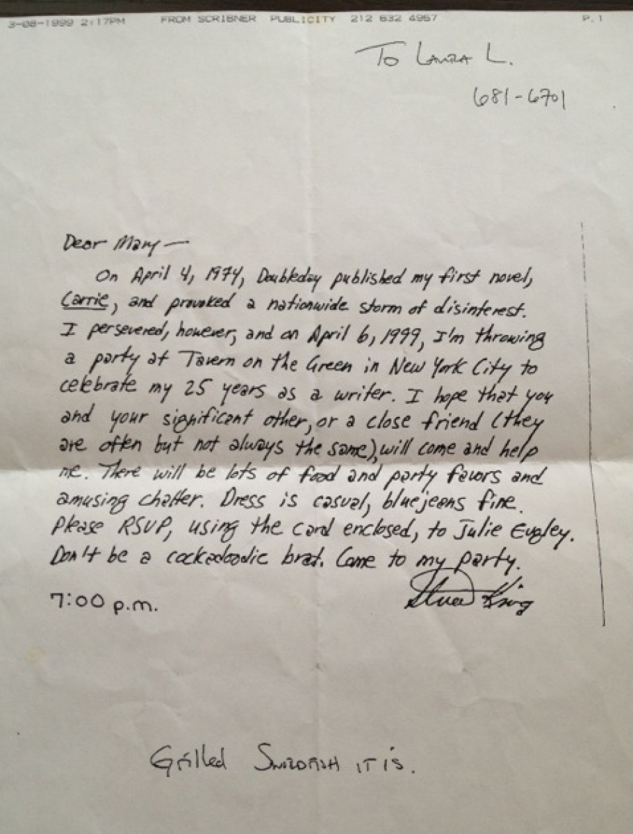 6 kwietnia 1999 roku Stephen King zorganizował przyjęcie z okazji 25-lecia obecności na rynku wydawniczym (liczonym od premiery debiutanckien powieści "Carrie"). Na imprezę zaproszono 120 osób i dla każdej z nich przygotowano pakiet podarunkowy w skład którego wchodziło: