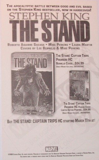 Standardowy gadżet promocyjny Marvela zachęcający do zapoznania się z komiksową wersją "The Stand".