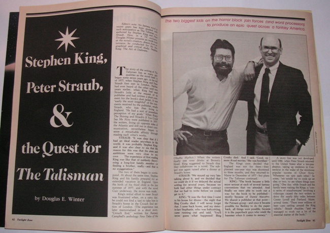 Czasopismo wydawane w latach świetności serialu "Rod Sterling's The Twilight Zone". Ten numer szczególny ze względu na obszerny artykuł "Stephen King, Peter Straub, & the Quest for 'The Talisman'" autorstwa Douglasa E. Wintera. Tekst został opracowany na podstawie materiałów zebranuch przez Wintera do opracowywanej przez siebiue książki "Stephen King: The Art of Darkness".