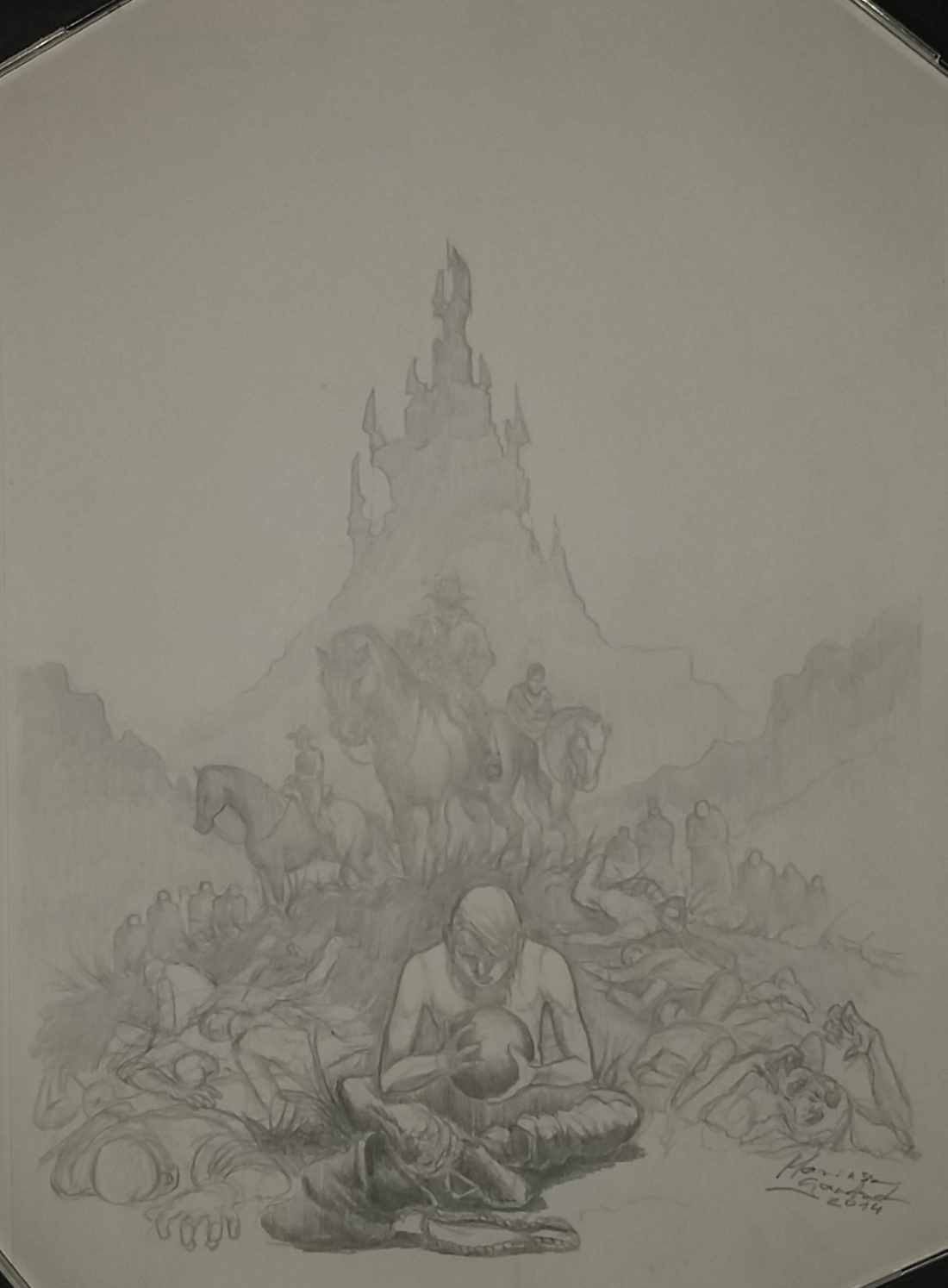 Technika: szkic podstawowy: ołówek na kartce A4, linearny, walor. Kolorowanie i drobne korekty kompozycyjne w programie photoshop. Oczywiście nie zabrakło autografu Mariusza.