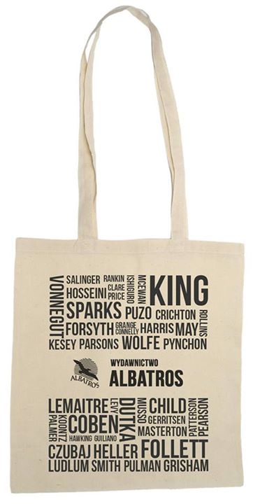 - torba ekologiczna z wyróżnionym nazwiskiem Kinga, która będzie dodawana do zakupów powyżej 100zł na stoisku Albatrosa na Warszawskich Targach Książki